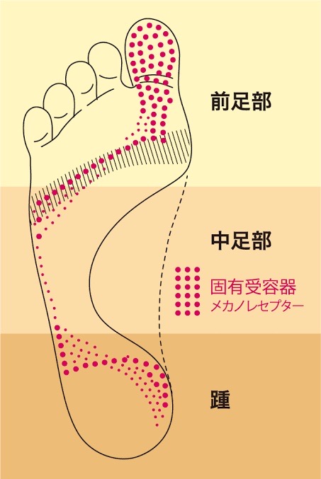 足の裏には特に多く存在している。これらは、姿勢の維持や歩行の安定に大きく関わっている。