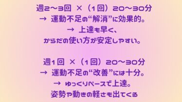 → 上達も早く、からだの使い方が安定しやすい。 週1回 ×(1回)20〜30分